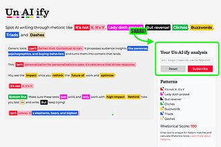 Updates to the Un•AI•ify app make it easy to share or keep an analysis.